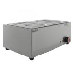 Особенности: Рабочая температура от +30 °C до +80 °C Подогреваемая емкость из нержавеющей стали для гастроемкостей Защитное стекло навеса Вместимость 3GN1/2 Настольное исполнение